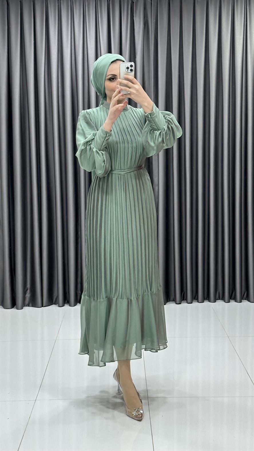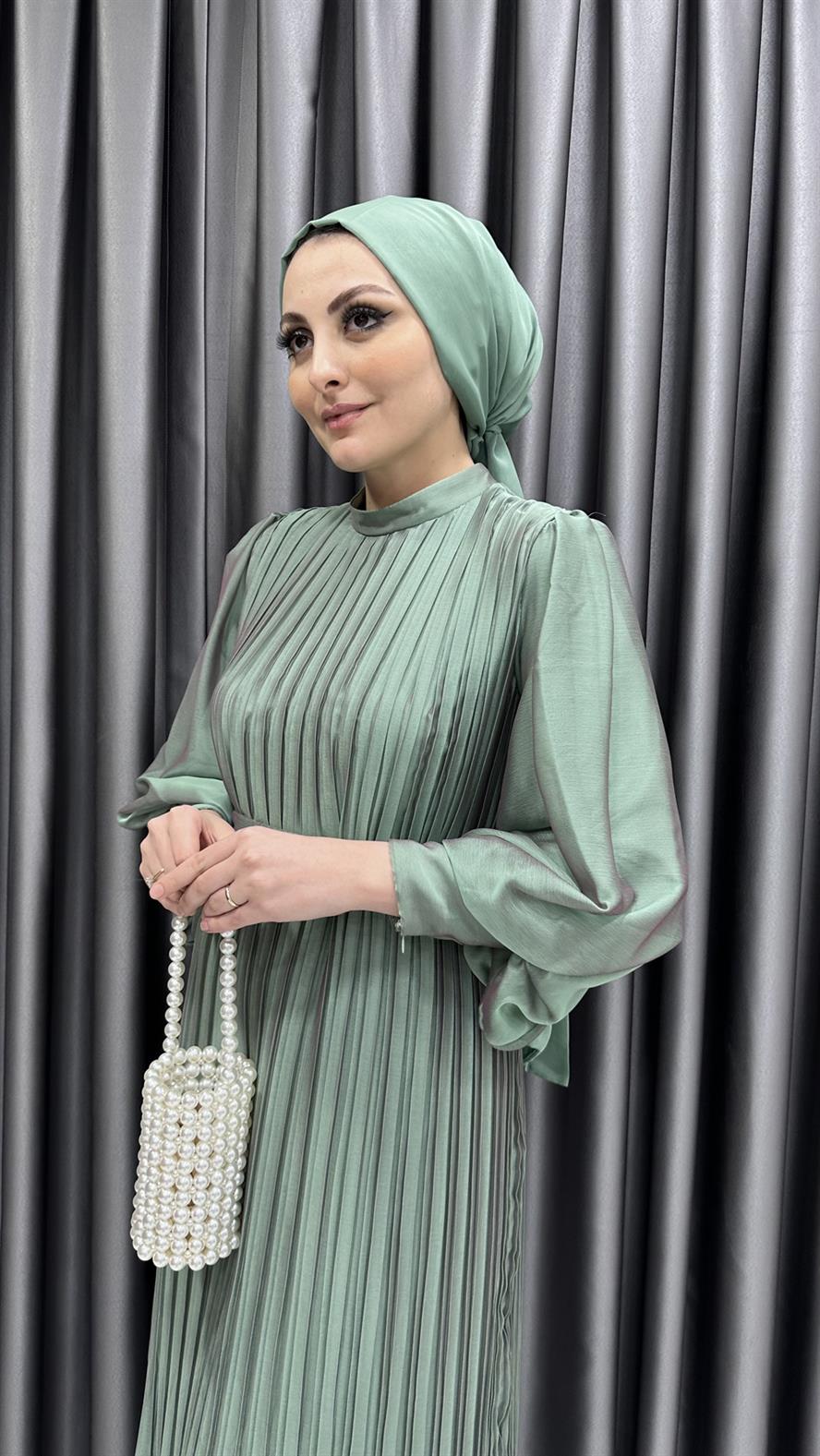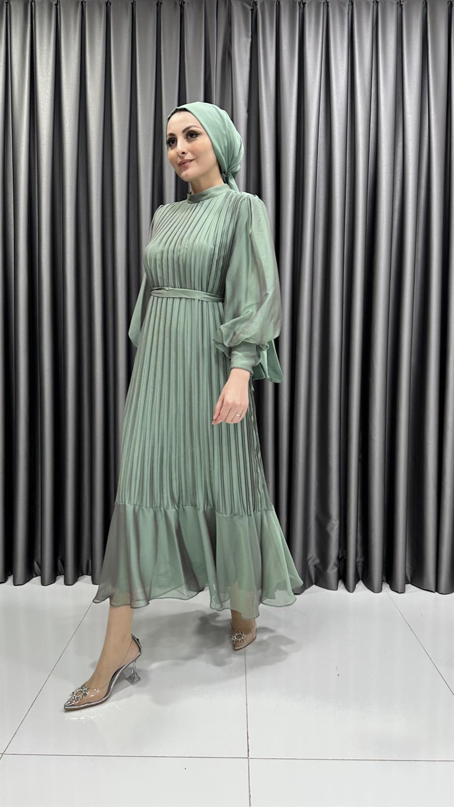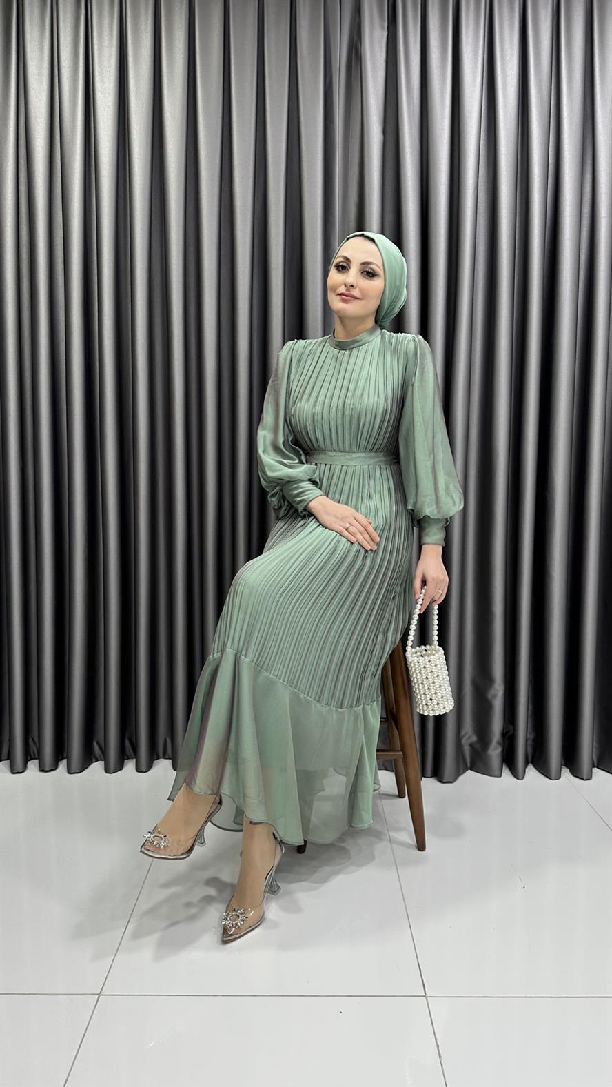 4541 R – Piliseli Balon Kol Şifon Kumaş Abiye