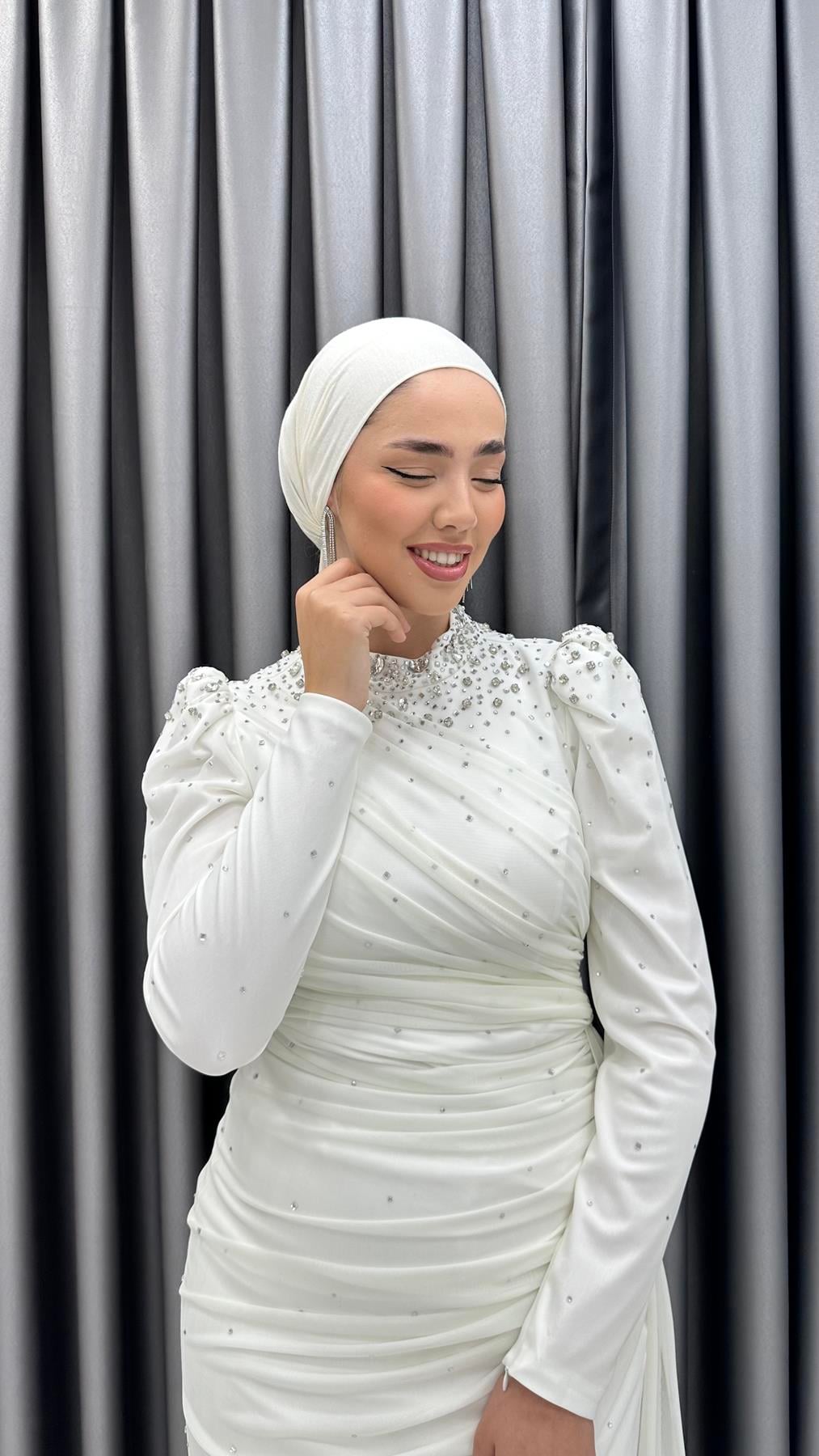4847 H - EFSUN Pelerin Etek Detaylı Drapeli Tül Abiye Elbise