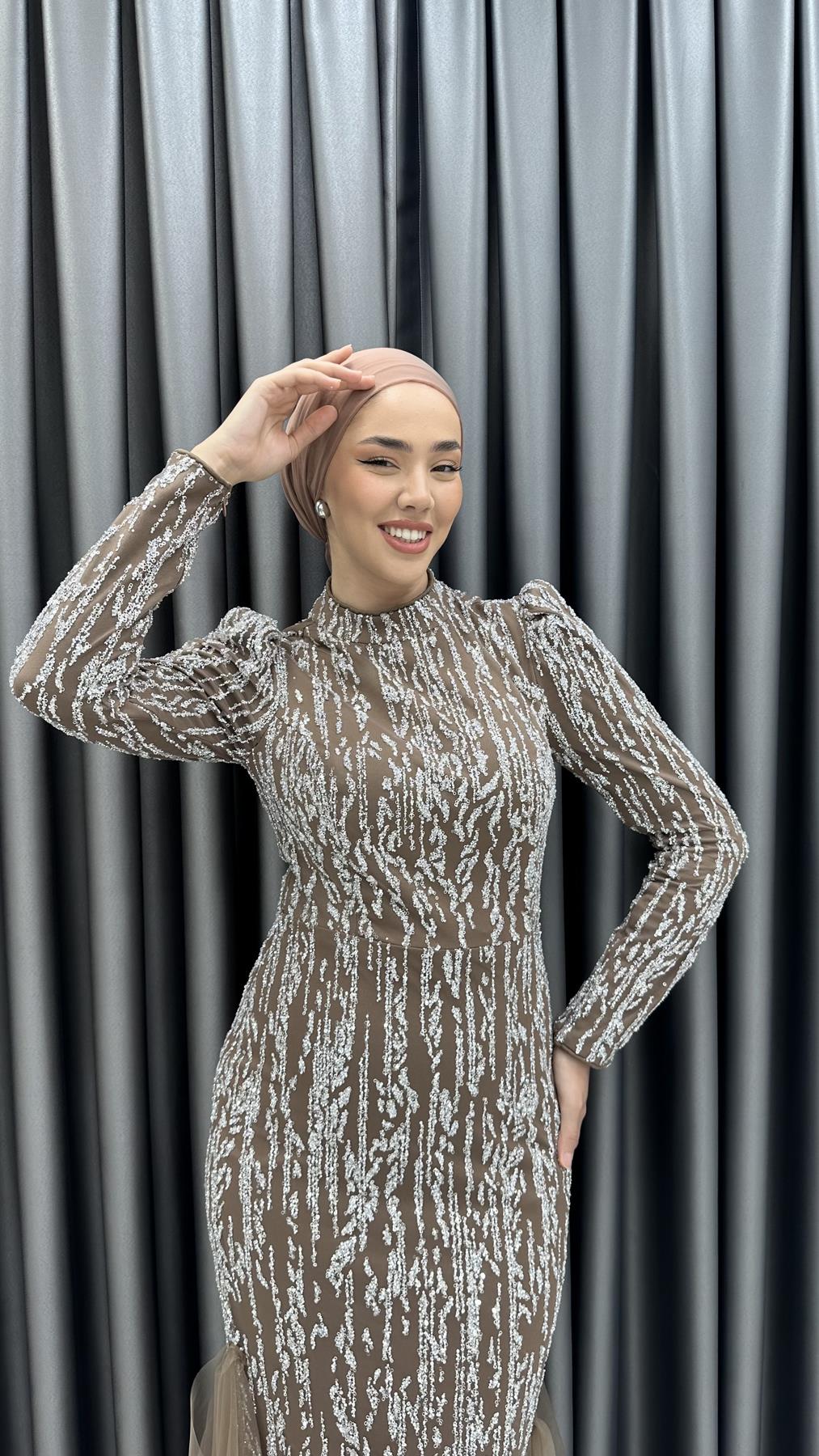 Balık kesim modeliyle feminen tarzınızı muhteşem bir şekilde yansıtacağınız abiye elbisemiz boncuklu tül kumaş ile hazırlanmıştır. Karpuz kolları ve eteğinden uzanan tül detaylarıyla harika bir şıklık katılmıştır. Abiye elbisemizi, balık kesimini ortaya çıkarmak için yüksek topuklu ayakkabılar ve zarf model çantalar ile kombinleyebilirsiniz. Renk seçeneği mevcuttur.