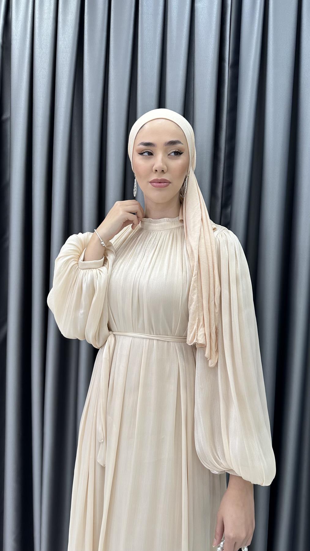Hem zarif hem sade tasarımları sevenler için hazırladığımız abiye elbisemiz davetlerdeki en iyi eşlikçiniz olacak. Jan jan kumaşın ışıltılı havasını belirginleştirmek için elbiseye piliseler eklenmiş olup belden bağlama detayı ve rahat kesimiyle harika bir bütünlük sağlanmıştır. Abiye elbisemizi metal kapamalı simli çantalar ve yüksek topuklu ayakkabılar ile kombinleyebilirsiniz. Renk seçeneği mevcuttur.